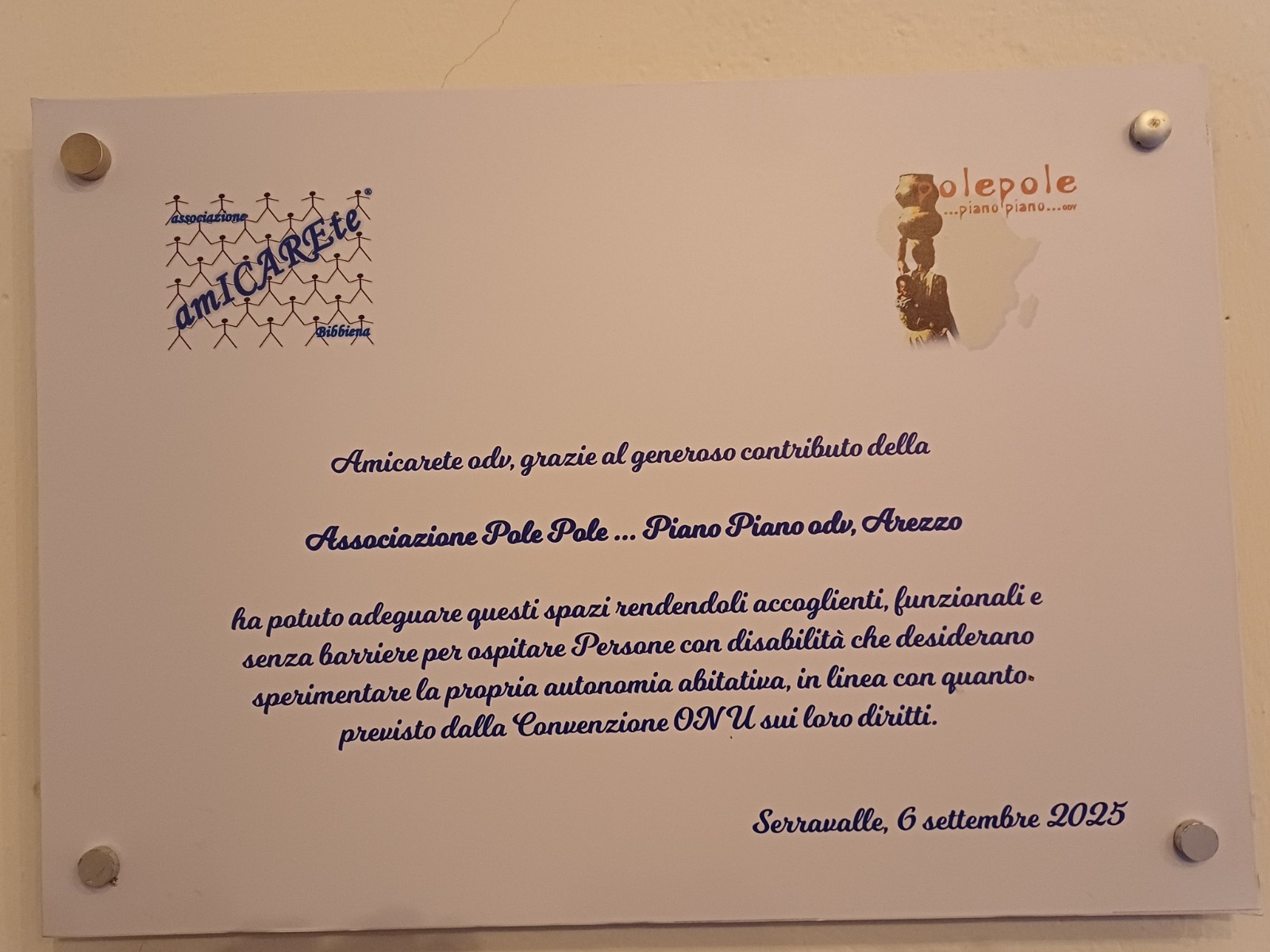 Sabato 6 settembre è stato inaugurato un nuovo spazio per l’autonomia abitativa per persone con disabilità. La struttura denominata “Profumo di Casa” è stata realizzata a Serravalle (Bibbiena), dall’associazione “AmicaRete odv” e con il generoso contributo economico dall’Associazione Polepole…pianopiano odv Arezzo.